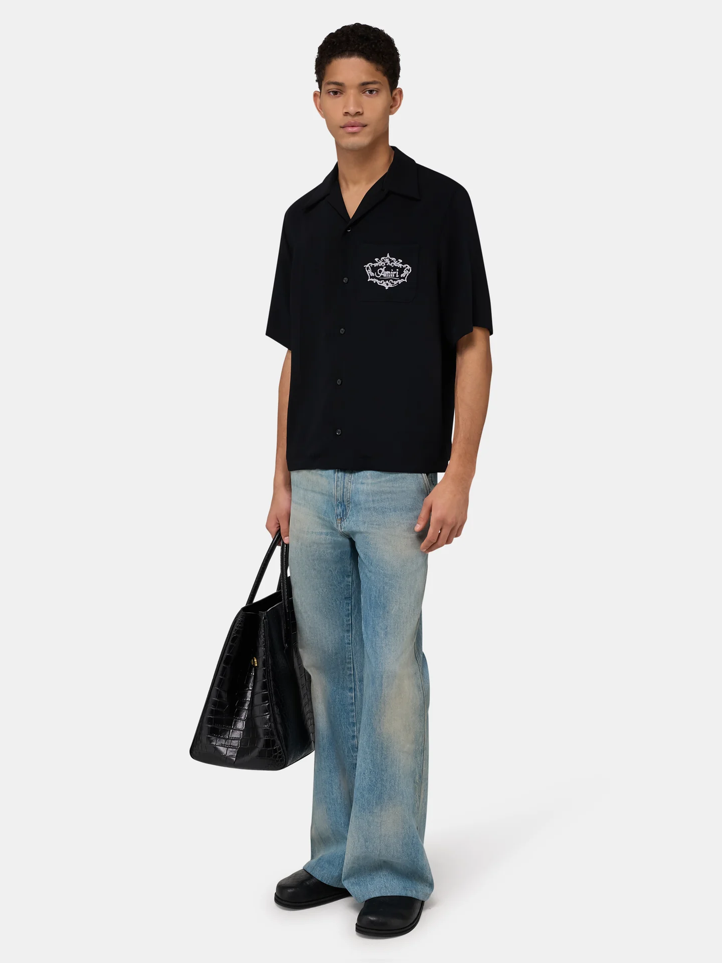 AMIRI BLACK CHATEAU CREST CAMP SHIRT